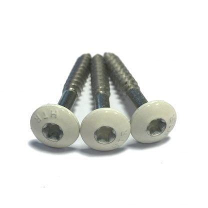 Onze HPL schroeven zijn verkrijgbaar in creme witte kleur RAL 9001 (bij benadering). De RVS schroeven zijn voorzien van een speciale coating tegen corrosie, UV-straling en krassen. Ze worden verkocht per 25 stuks € 9,95,- (excl. BTW) en geleverd met een bitje op maat voor jouw schroefboormachine.