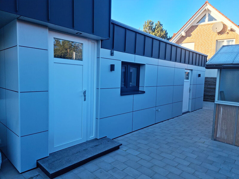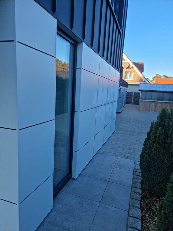Onze HPL platen zijn verkrijgbaar in binnen- en buitenkwaliteit. De buitenkwaliteit platen zijn geschikt voor toepassing op gevels, zoals bij deze woning in Duitsland. De gladde platen in verschillende kleuren geven het huis een bijzondere, moderne uitstraling. En het is nog makkelijk te onderhouden ook!