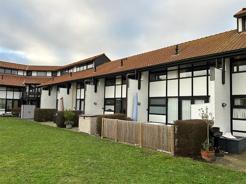 In de Belgische kustplaats Westende zijn de vakantiewoningen van vakantiedomein Duinengolf van nieuwe gevelbekleding voorzien. Een mooi project voor 2ekeus: het ging om maar liefst 40 woningen. De oude gevel is vervangen door onze witte 6 mm dikke HPL-platen in de afmeting 1300 x 2800 mm. De kleur is wit 2262.