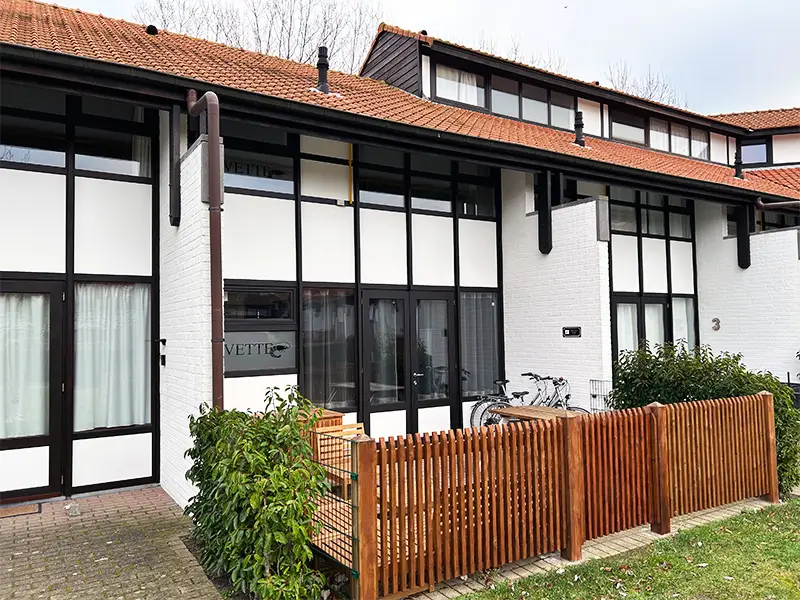 De strakke, moderne HPL platen combineren uitstekend met de jaren-60 bouwstijl van de vakantiewoningen. Bovendien biedt het gebruik van witte HPL platen nog meer voordelen. Zo vereist HPL weinig onderhoud en heeft het een lange levensduur. Ideaal voor vakantiewoningen, waar je vanzelfsprekend het liefst zo min mogelijk onderhoud aan hebt!